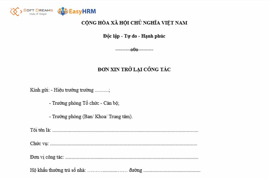 Mẫu đơn xin đi làm lại sau khi nghỉ không lương mới nhất 2025