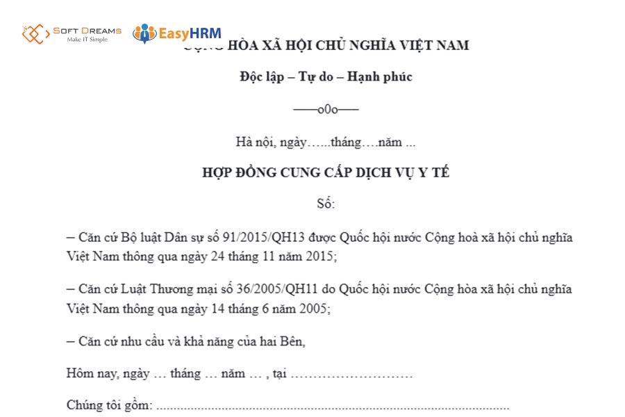 Mẫu hợp đồng cung cấp dịch vụ y tế