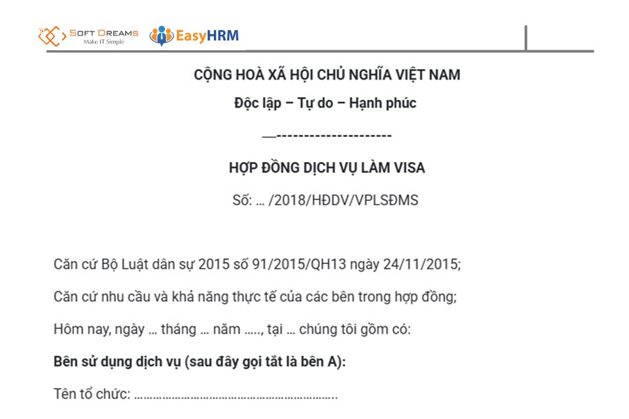 Mẫu hợp đồng dịch vụ làm visa